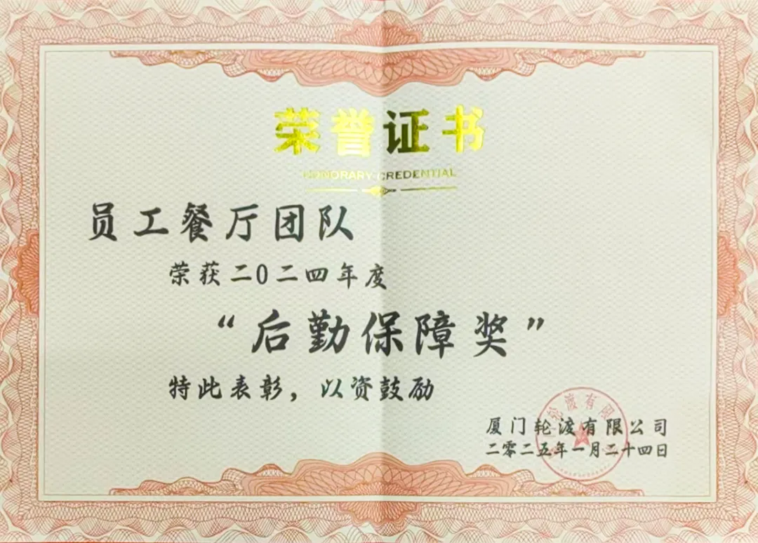 厦门轮渡有限公司给公司餐厅运营团队颁发“后勤保障奖”荣誉证书