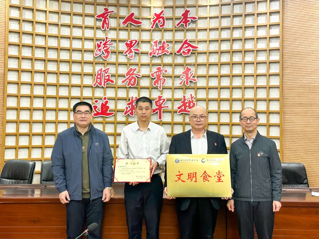 厦门城市职业学院给南强后勤服务公司颁发“文明食堂”牌匾及荣誉证书